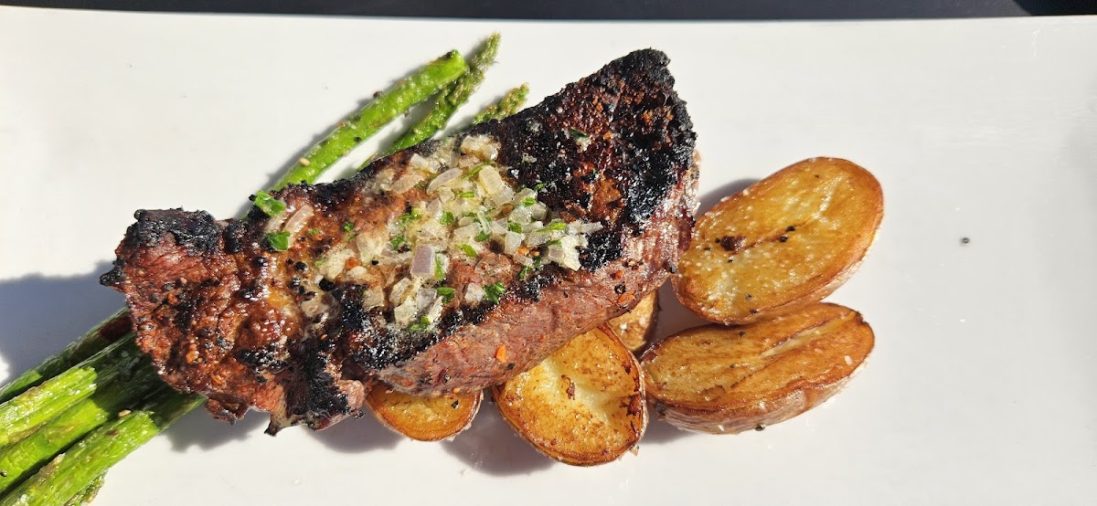 Service was excellent. Friendly and helpful. My sirloin was all grissel, so they upgraded me to the baseball sirloin which was amazing. The flatbreads were delicious although my father found it a bit spicy. My son enjoyed the chicken fingers too. Lovely view from the patio. Definitely suggest reservations.
